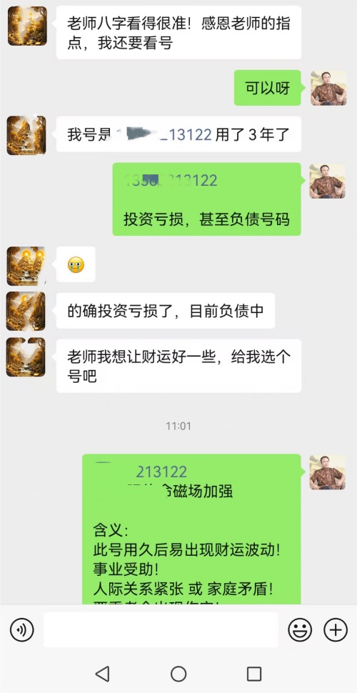 之前有一个客户是客服经理,他盲目更换尾号为218的手机号,仅使用4个月就频繁出现运势波动:工作中冲动出错,与同事发生多次争执,还因盲目投资亏损近2万元,同时伴随失眠、情绪焦虑等问题。