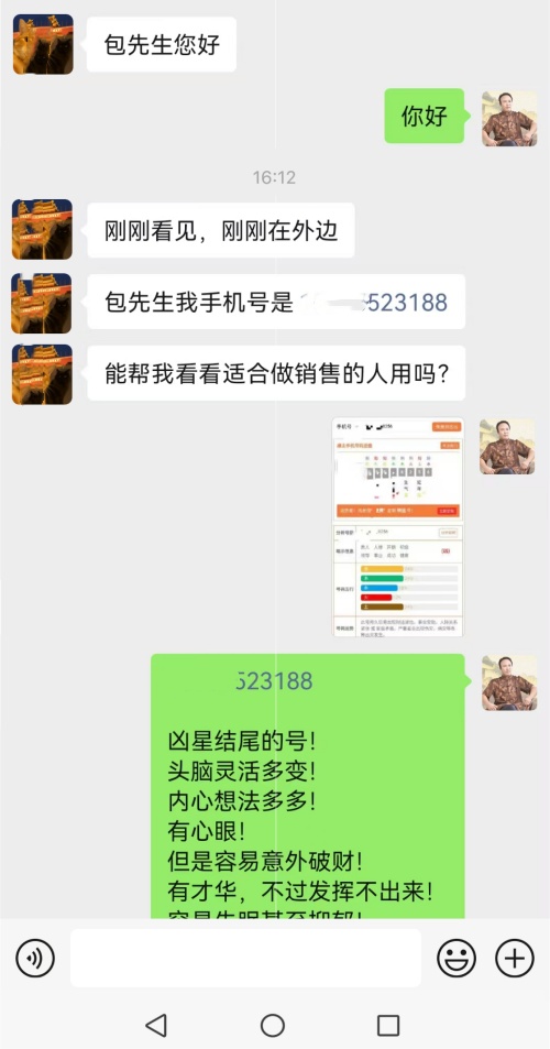 之前遇到一个销售的客户,八字缺土,生于农历5月,需补土调侯。之前盲目追求全吉号,花高价买了尾号为6888的手机号,包含天医招财吉星,看似完美,却使用了一年多,业绩平平,还总因沟通失误错失客户,甚至出现口舌纠纷。经分析发现,该号码全是吉星组合,无凶星制衡,能量失衡。且未结合八字缺土的需求搭配祸害+天医组合,反而堆砌天医吉星,导致“土多埋金”。同时,未贴合销售职业需求,缺少祸害磁场助力沟通,即便吉星再多,也无法发挥作用。